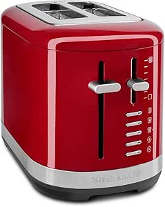 KitchenAid Grille pain pour 2 tranches – 4 Fonctions différentes et 7 niveaus de brunnage – Vintage design – 2 Large fentes pour plusieurs types de pain – Rouge empire